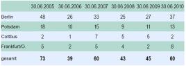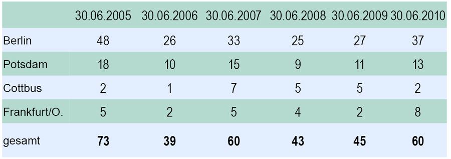 (13. Juli 2010) - Die bereits im letzten Rundschreiben prognostizierte positive Tendenz bei neu abgeschlossenen Berufsausbildungsverträgen im Zahntechniker-Handwerk in der Region Berlin-Brandenburg setzt sich weiter fort. Mit insgesamt 60 neu eingetragenen Ausbildungsverhältnissen zum 30.6.2010 ist eine spürbare Steigerung im Vergleich zu 2008/09 zu verzeichnen.