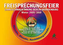 (04. April 2010) -"Eine bestandene Prüfung erzeugt ein besonderes Glücksgefühl. Merken Sie sich dieses "Prüfungsgefühl" und holen Sie es sich wieder, so oft es geht. Gehen Sie auch mal den schweren Weg, entscheiden Sie selbst über Ihr eigenes Leben...", so ermutigte der Hauptgeschäftsführer der Handwerkskammer Berlin, Jürgen Wittke, in seiner lebhaften Festrede die ehemaligen Lehrlinge, die mit ihren Ausbildern und Gästen zur traditionellen Freisprechungsfeier der Zahntechniker-Innung Berlin-Brandenburg am 25. Februar in die Kirche zum Heiligen Kreuz in Berlin gekommen waren. "Sie sind wichtigster Partner der Zahnärzte, ohne Sie läuft in der Zahnmedizin fast nichts!", motivierte J. Wittke weiter, "Zahntechniker sind Ästhetiker der besonderen Art; handwerkliche Präzision und Feinarbeit paaren sich mit ästhetischem Empfinden für Formen und Farben. Der Einsatz computergestützter Technik erleichtert zwar präzises Arbeiten, der Faktor Mensch jedoch wird unverzichtbar bleiben. Der Beruf des Zahntechnikers wird nie aus der Mode kommen!"