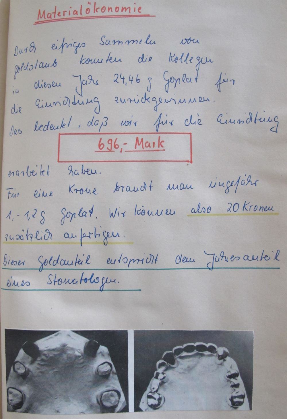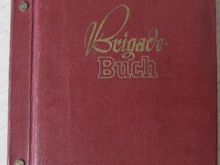 Carola G.: Es hat mir eigentlich immer Spaß gemacht. Besonders der Zusammenhalt unter den Kollegen war gut und wir hatten neben der Arbeit viel Spaß miteinander. Wir waren ja eine Brigade. Wir mussten unsere parteipolitischen Verpflichtungen und unsere gemeinsamen Aktivtäten in einem jährlich zu erstellenden Brigadebuch dokumentieren. Es existiert noch das Brigadebuch von 1974 (Herr Scheve hat es während unseres Besuchs für uns vom Speicher geholt). Wie man sieht, gab es viele Feiern und Ausflüge während dieser Jahre, die wir hier dokumentiert sehen. Auch fachliches zum Thema Zahntechnik gehörte da rein. Die parteipolitische Garnierung im Buch haben wir nach Mindestanforderung abgeleistet, so hatten wir unsere Ruhe.