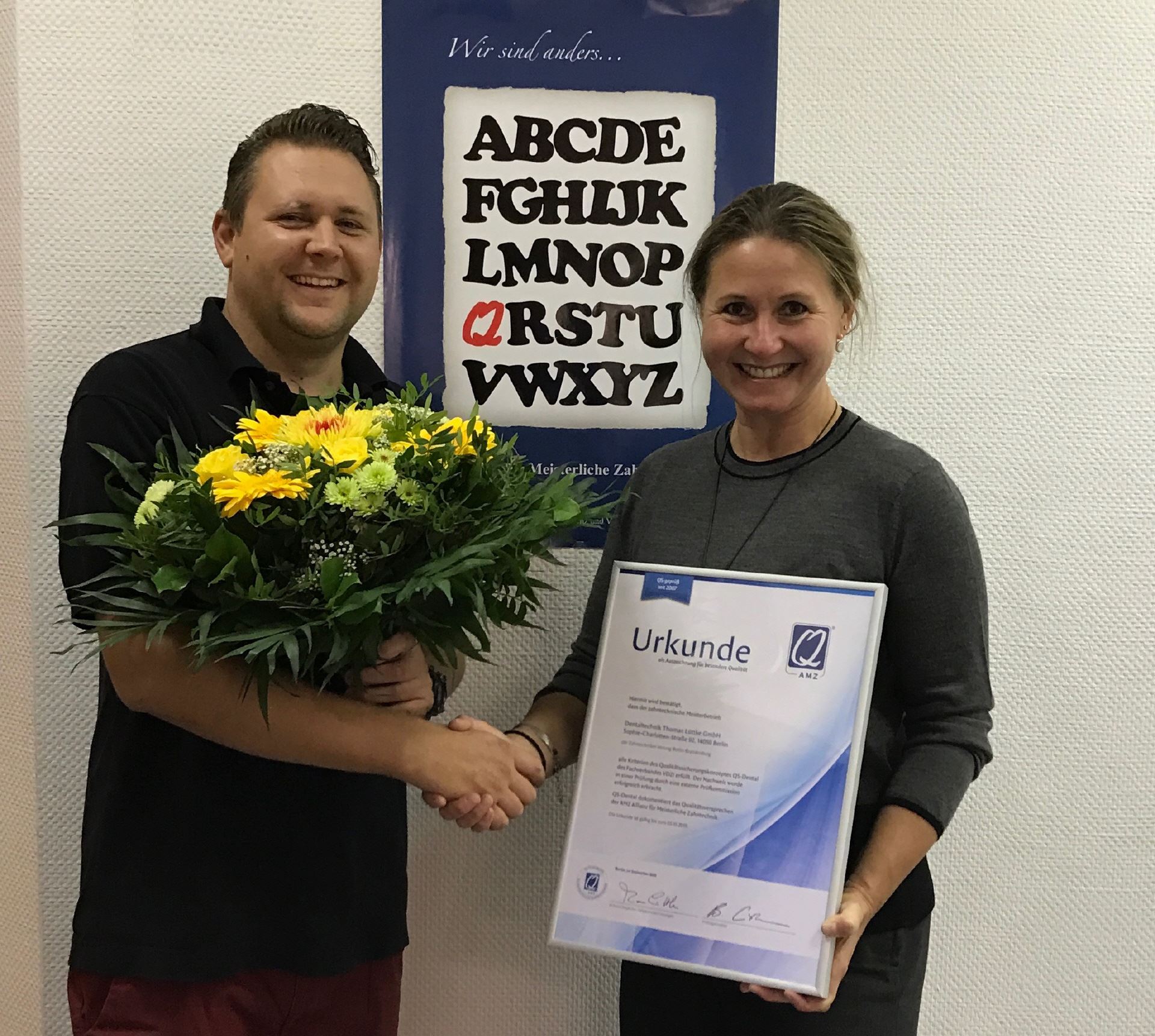 Mit der "Dentaltechnik Thomas Lüttke GmbH" hat sich in diesem Jahr auch einer der Pioniere von "QS-Dental" rezertifizieren lassen, nun bereits zum 3. Mal! Wir gratulieren herzlich!!