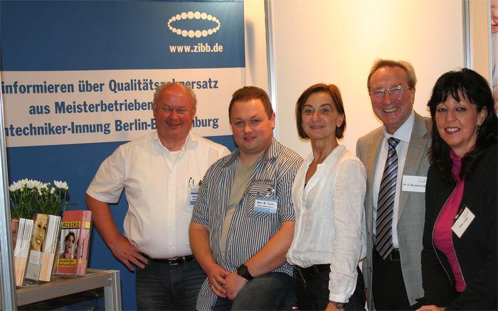 Am Stand der Zahntechniker-Innung: Zahntechnikermeister Udo und Michael Sachs (links) und Vetreter der KZV Brandenburg