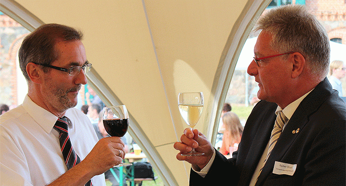 Beim Sommerabend, im Anschluss an den Besuch im Labor Jonas, ergaben sich auf dem Gutshof Schloss Börnicke dann sogar Gelegenheiten zu Vier-Augen-Gesprächen, auch mit dem Ministerpräsidenten Matthias Platzeck