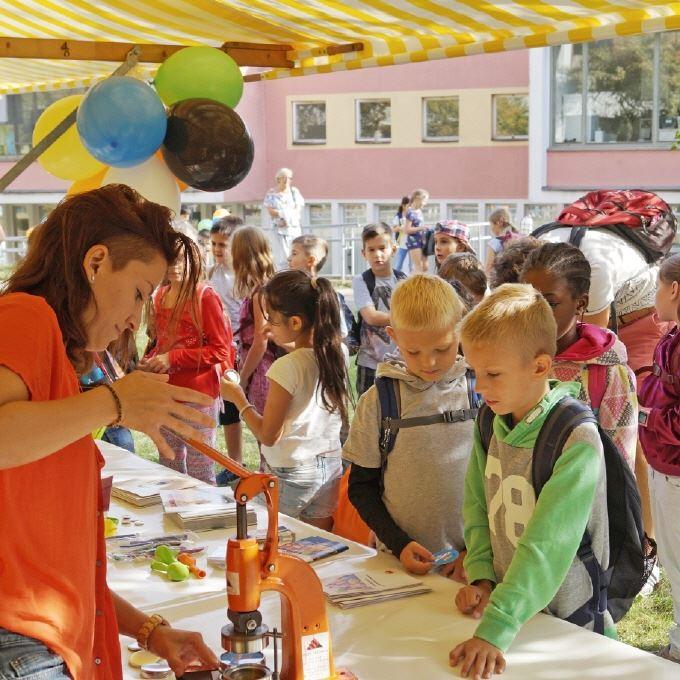 So konnten die Kinder am Stand der MDZI eigene, mit ihrem Namen versehene Broschen herstellen unter dem Motto: „Ich bin cool, ich putze meine Zähne“.